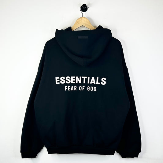 FEAR OF GOD ESSENTIALS FLEECE PULL OVER HOODIE BLACK/WHITE