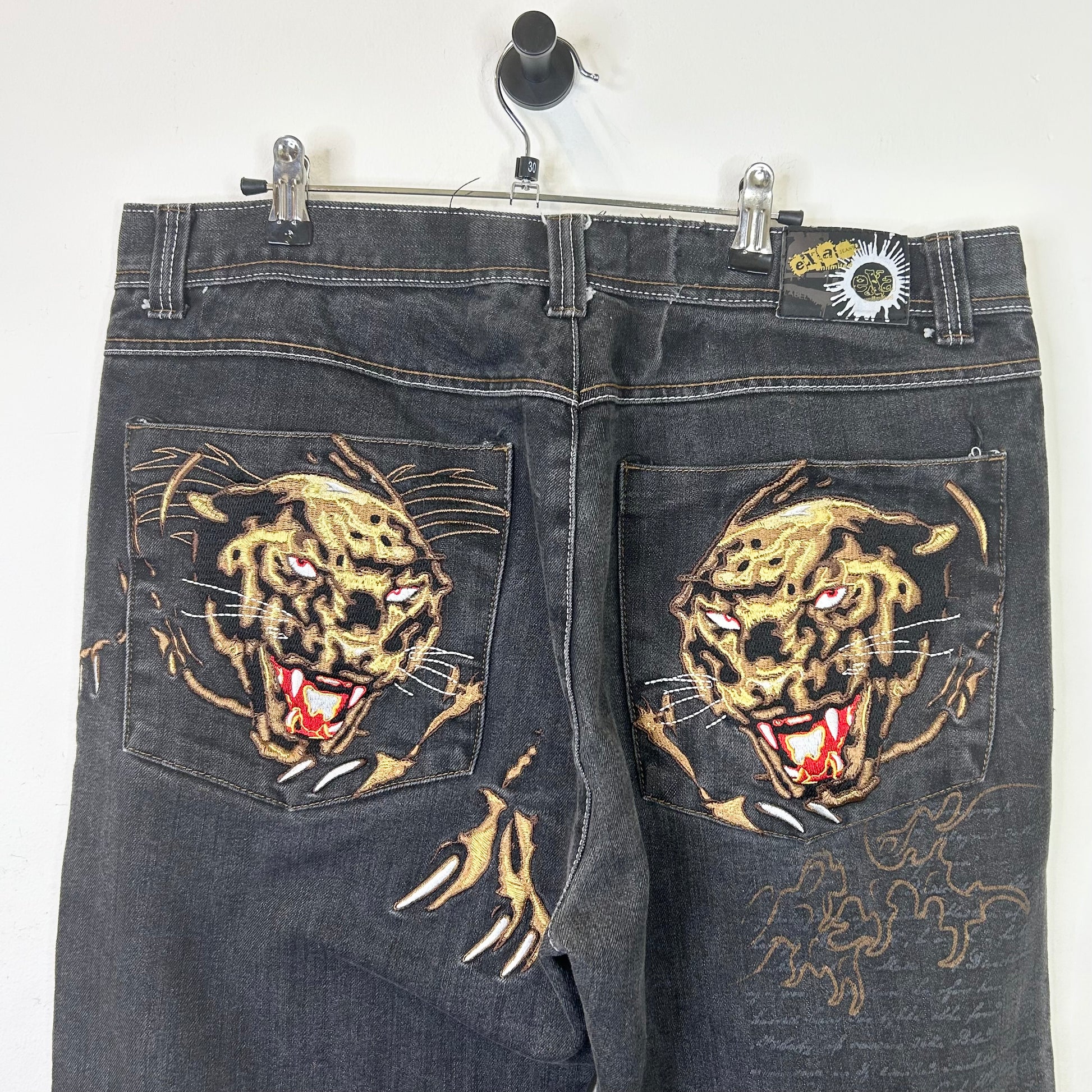 EXA UNLIMITED TIGER EMBROIDERED BLACK JEANS