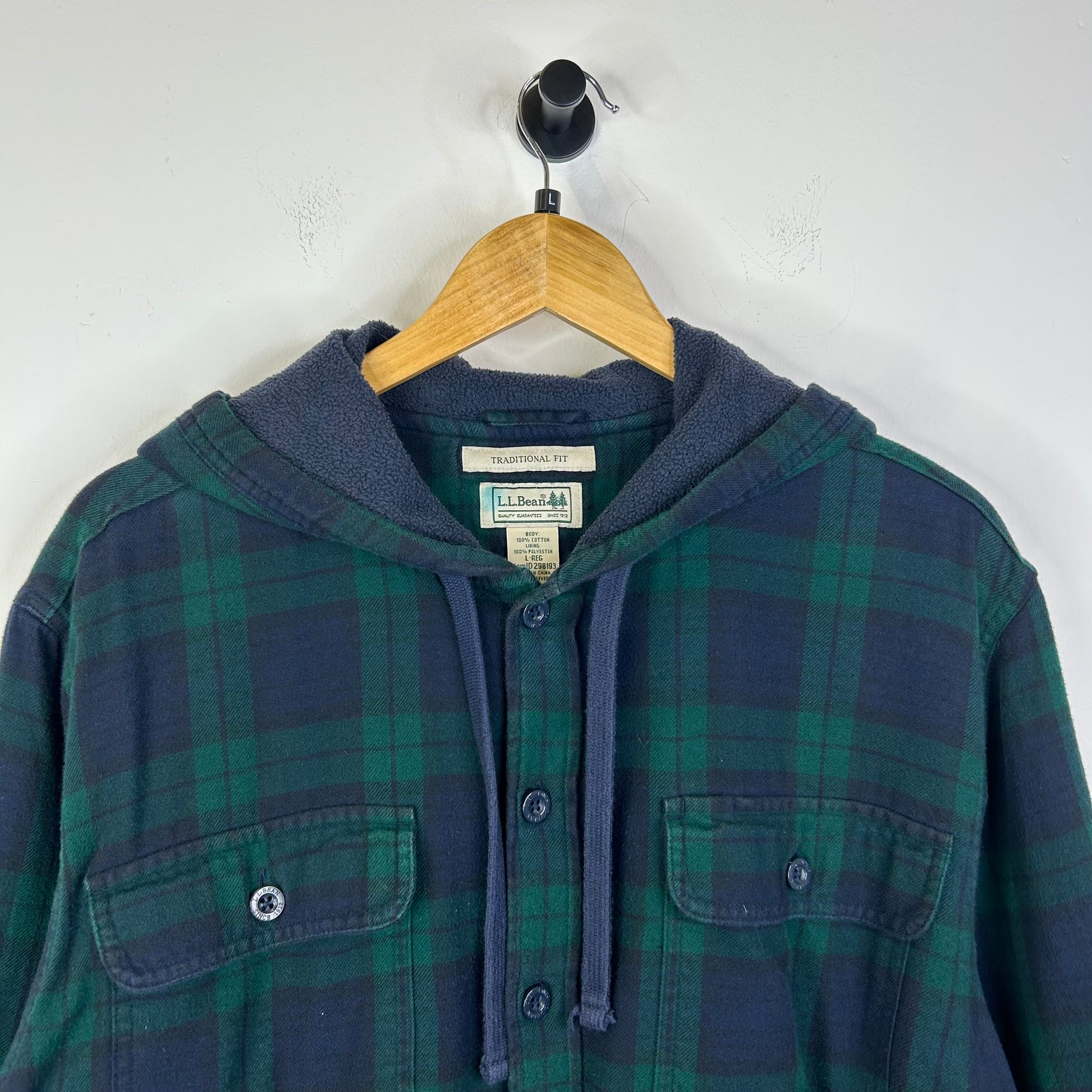 LL BEAN GREEN FLANNEL BUTTON UP