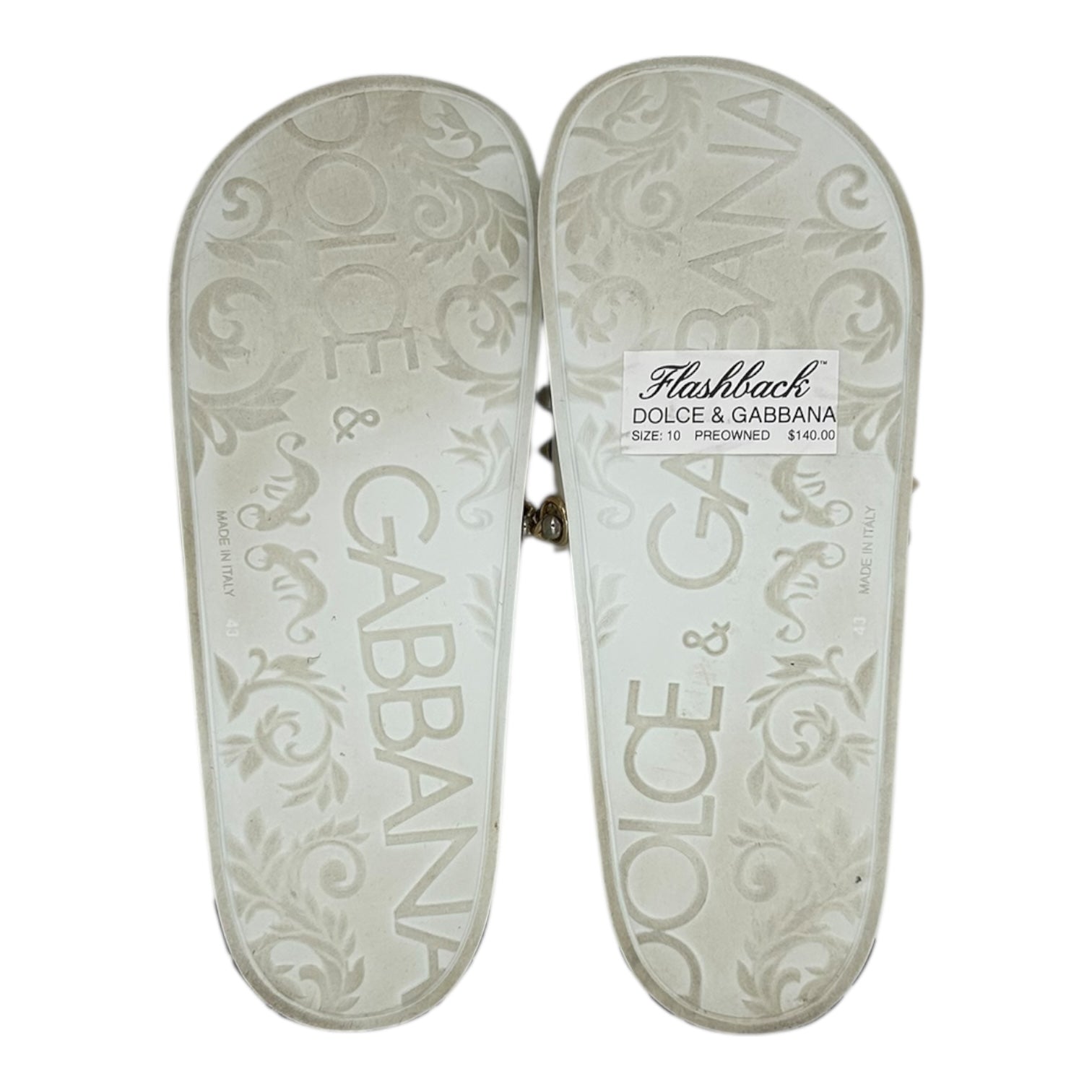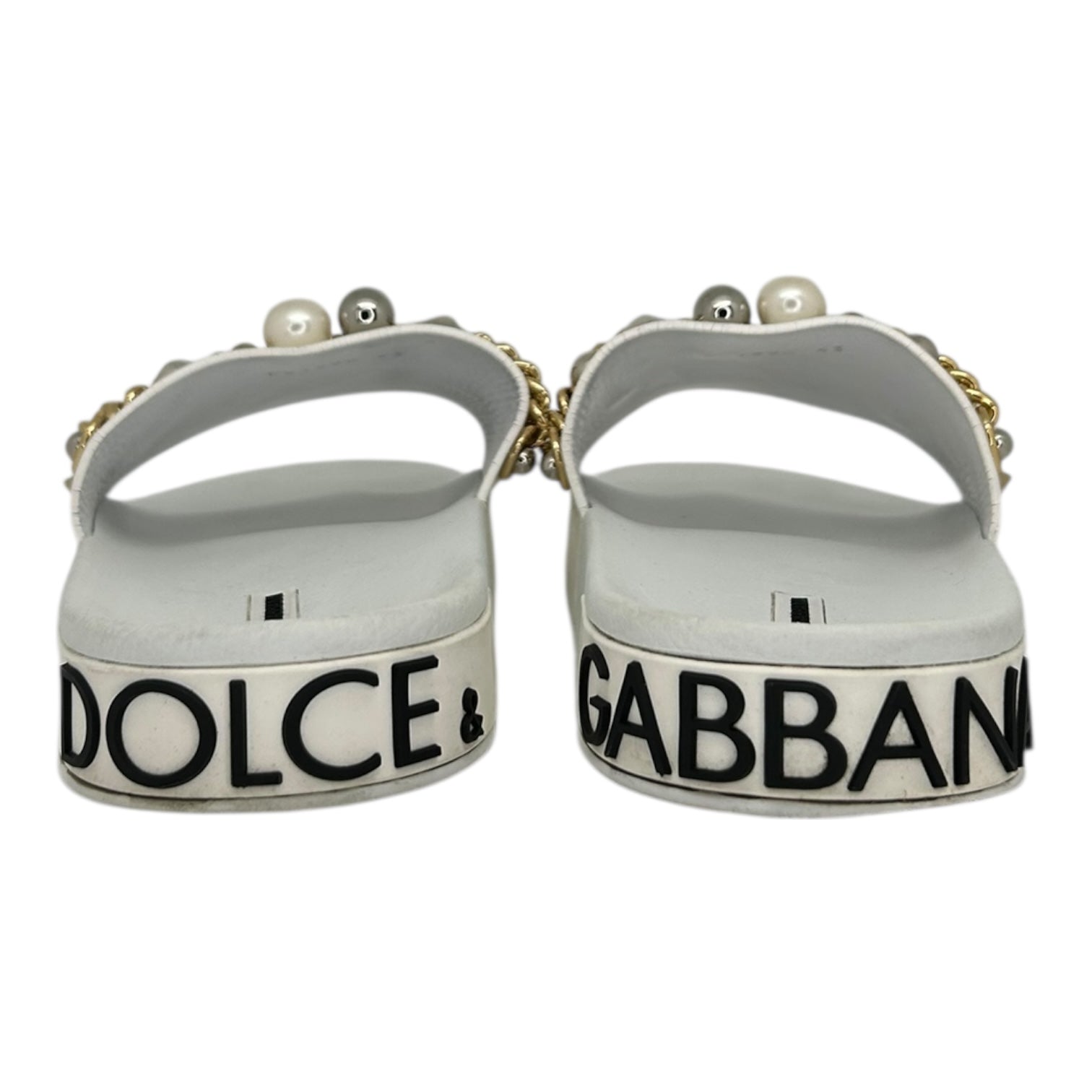 PREOWNED DOLCE AND GABBANA EMBELLISHED STUDDED LOGO SLIDES