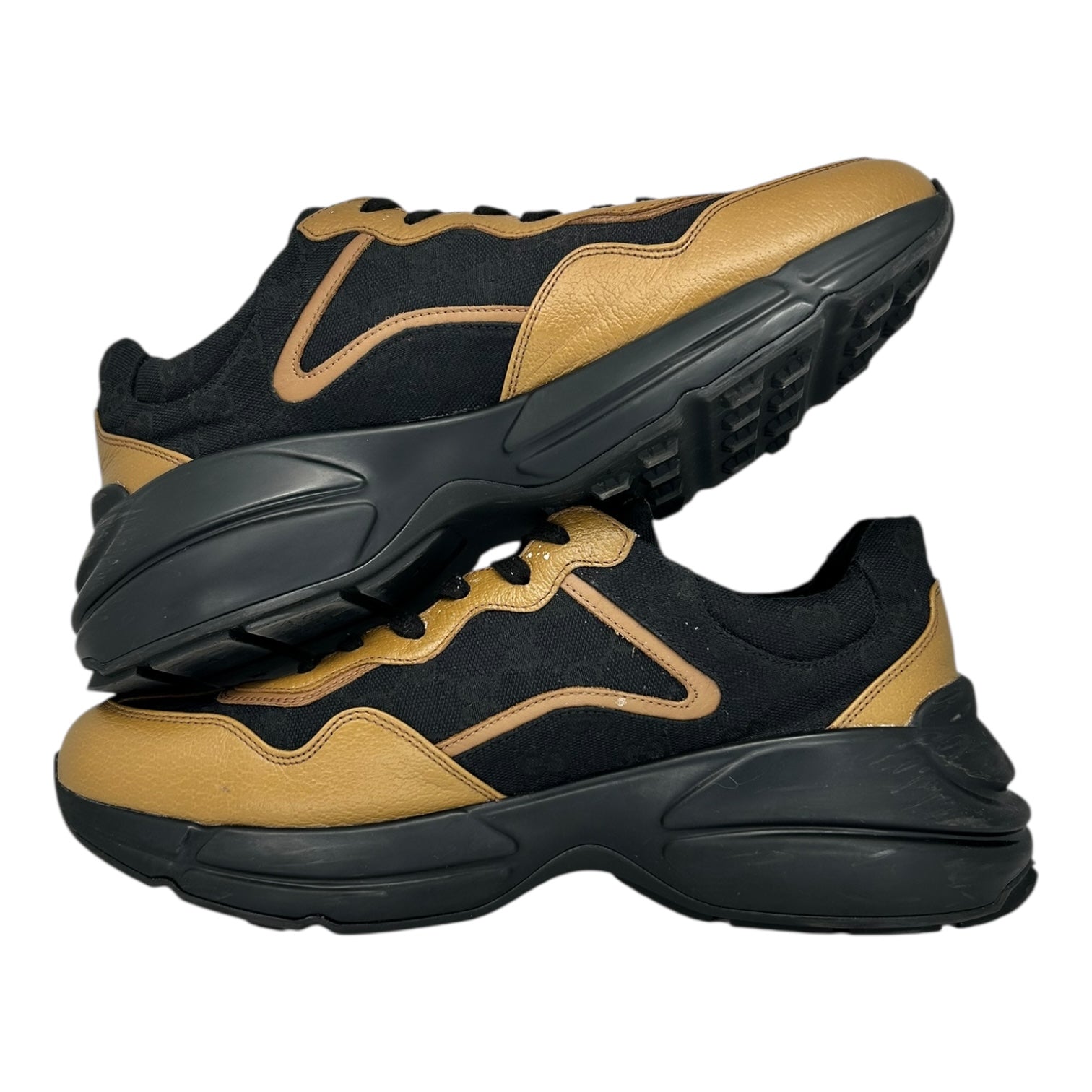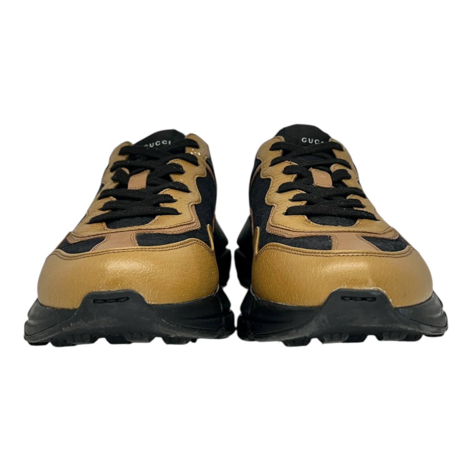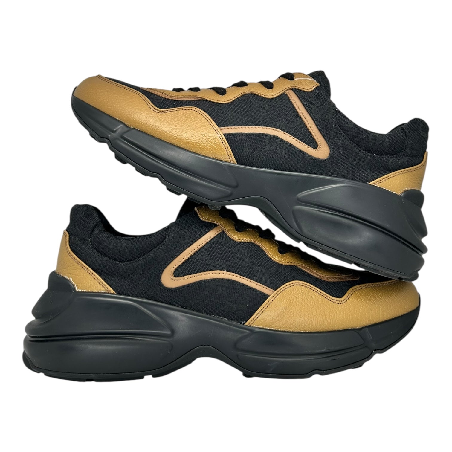 PREOWNED GUCCI RHYTON BLACK KHAKI LEATHER