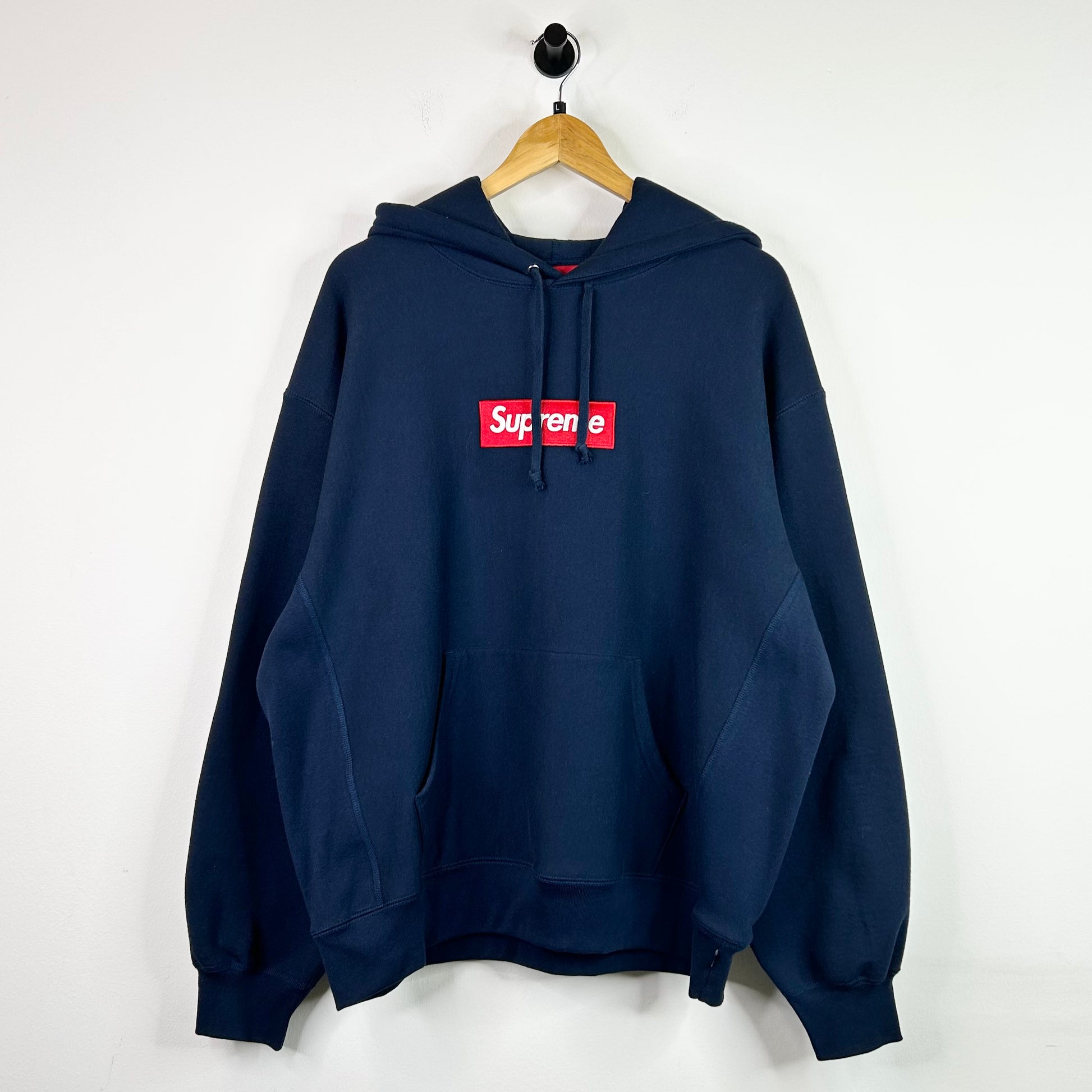 SUPREME RED BOX LOGO NAVY HOODIE